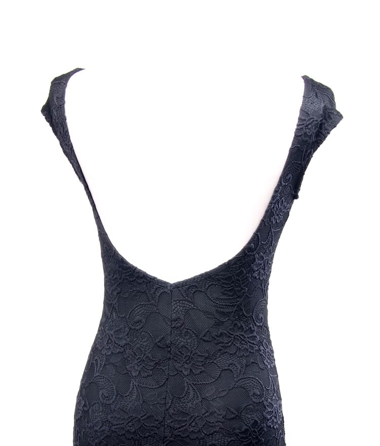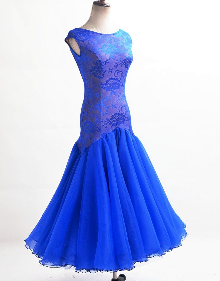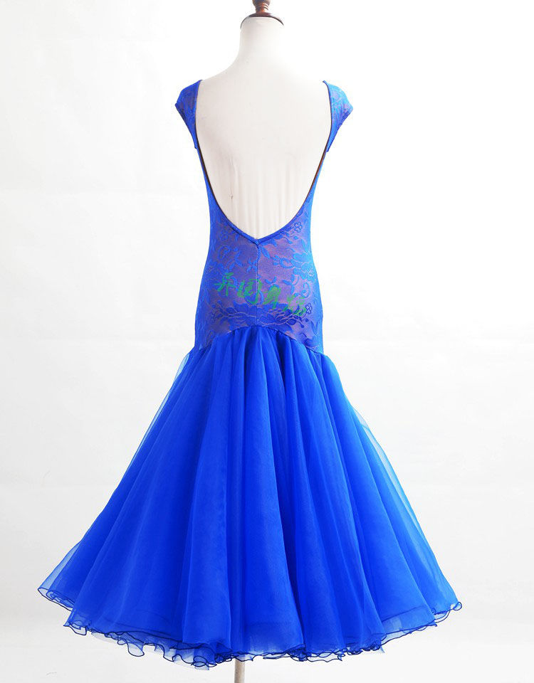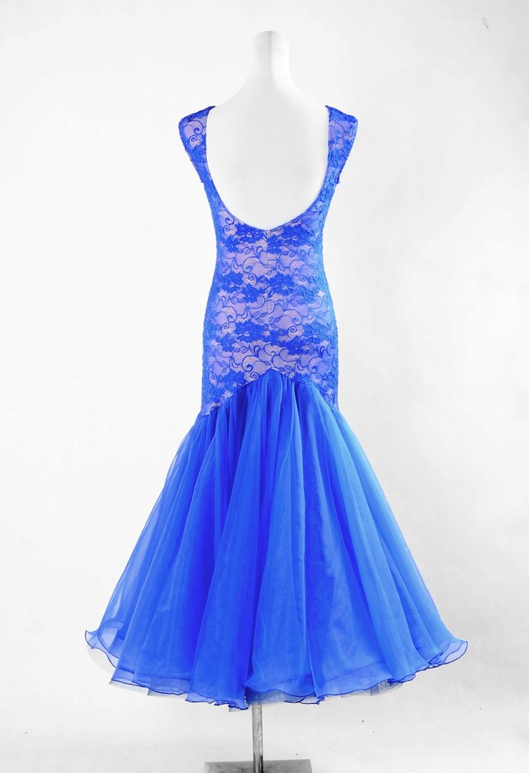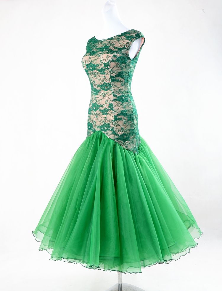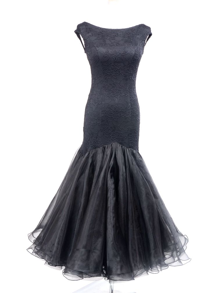 マーメイドラインが美しいダンス用ワンピースのご紹介です。シンプルなデザインながらボディ部分がレース模様で覆われているのでシックな雰囲気。