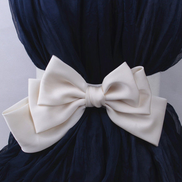 スカート、ワンピース、何にでも合わせられる大人気のリボンベルト第二弾です!こちらはリボンが3段になっていて、個性的なデザインです。お持ちのスカートのウエストがゆるいかも・・・ワンピースのウエスト部分が間延びする・・・そんな時にこちらのベルトがあれば、リボンがかわいくウエストをマークしてくれます。ウエストはゴムの素材になっているので痛くありません。