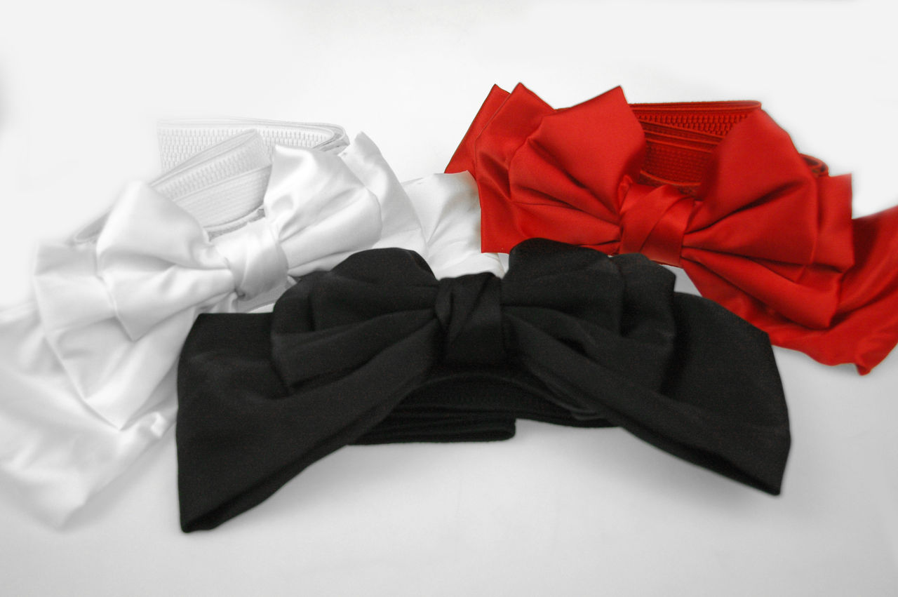 スカート、ワンピース、何にでも合わせられる大人気のリボンベルト第二弾です!こちらはリボンが3段になっていて、個性的なデザインです。お持ちのスカートのウエストがゆるいかも・・・ワンピースのウエスト部分が間延びする・・・そんな時にこちらのベルトがあれば、リボンがかわいくウエストをマークしてくれます。ウエストはゴムの素材になっているので痛くありません。