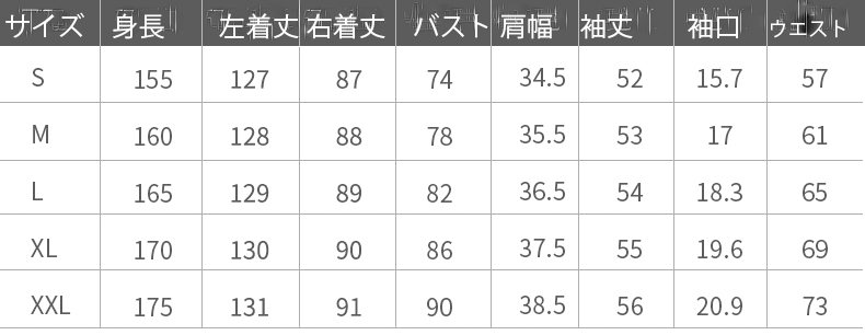 | サイズ | S M L XL XXL ※下にサイズ詳細あり |